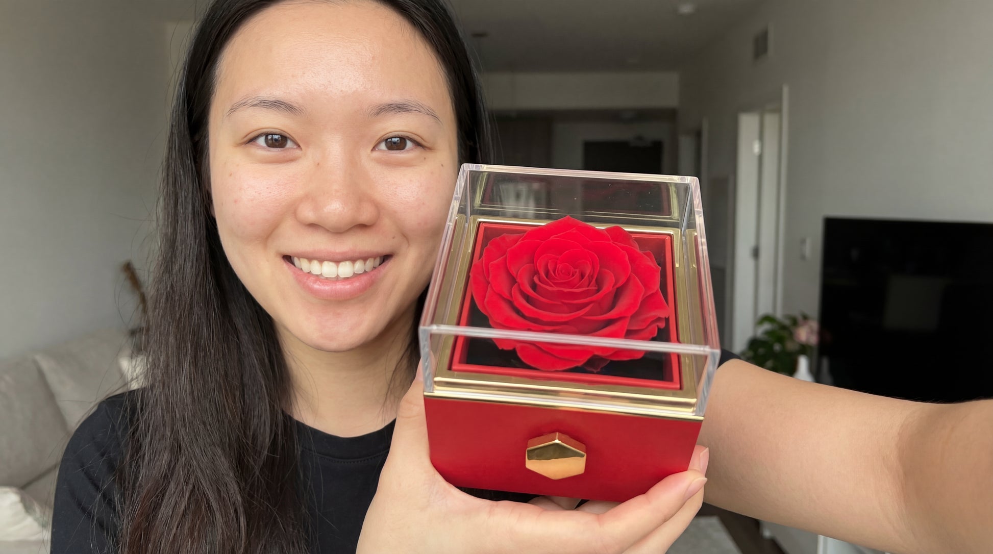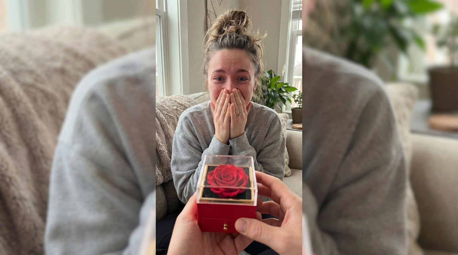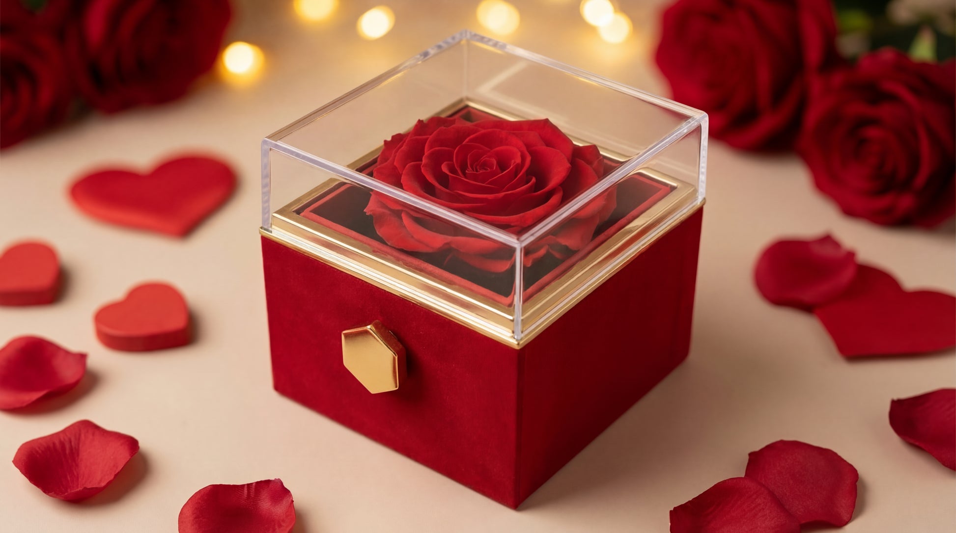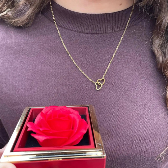 חבילת יום האהבה - אריזה רומנטית + ורד אדום + שרשרת בגוון זהב